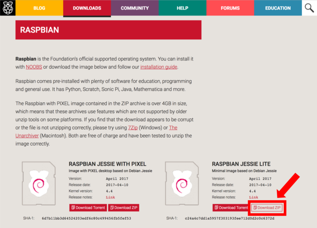 先ずはラズパイとしてのセットアップなんですが、ここは特にはまるところもないし、シンプルにraspbian OSをダウンロードして、展開するだけなんで、以下のサイトを参考にしてインストール進めました。