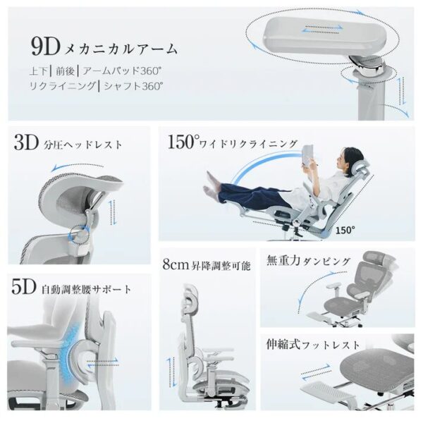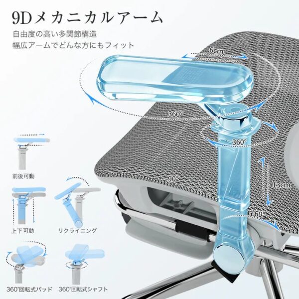 Aerlix N09高機能・9Dアーム・コスパ重視・オフィスチェア/ゲーミングチェア兼用型約2万円