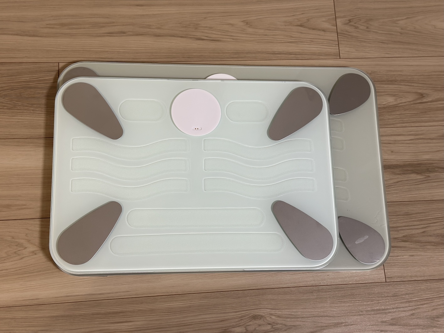 このおかげで、体重計の下に入り込むゴミや髪の毛が大幅に減りました。以前のモデルは四隅しか接地されていないので、全面から髪の毛が潜り込む、たびたびの掃除が必要でした。