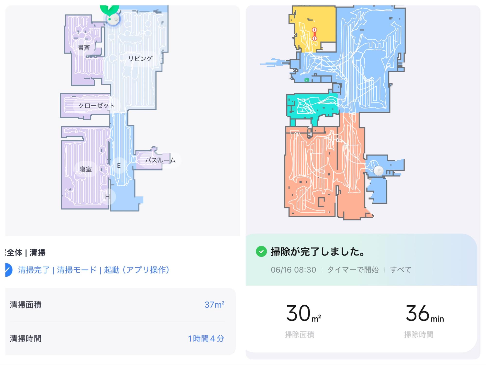 こちらは、Roborock S5 maxとのお掃除履歴の違いですが、まず言えるのは圧倒的にK11+のほうが細かい範囲で、隅々までお掃除してくれている、ということです。