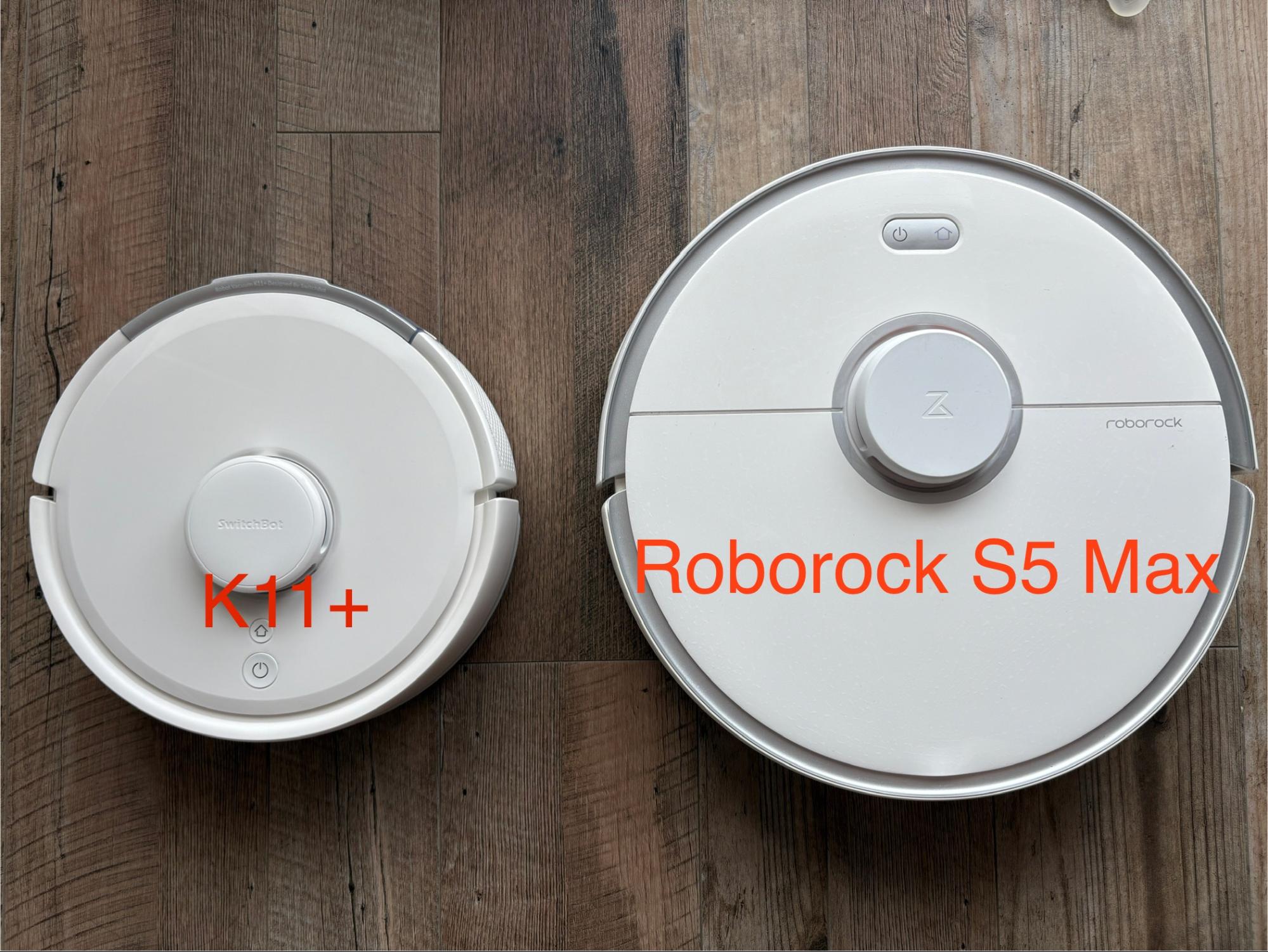 右側は我が家で現役のRoborock s5Maxですが、左のロボット掃除機 K11+は、これだけの小ささで圧倒的にスペックも上回っています…。
