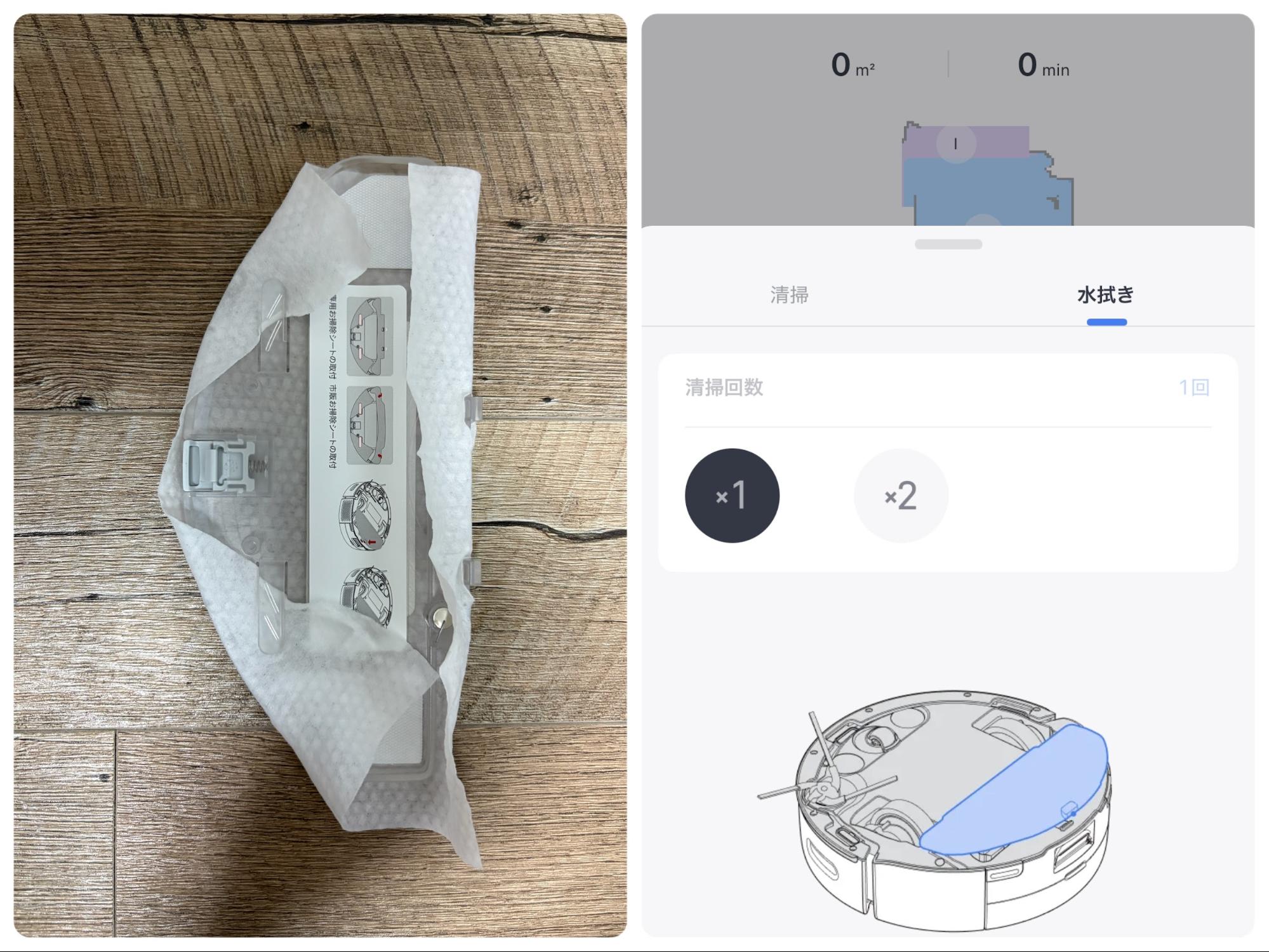 | モップ機能 | 使い捨てお掃除シート方式(モップ洗浄なし) |