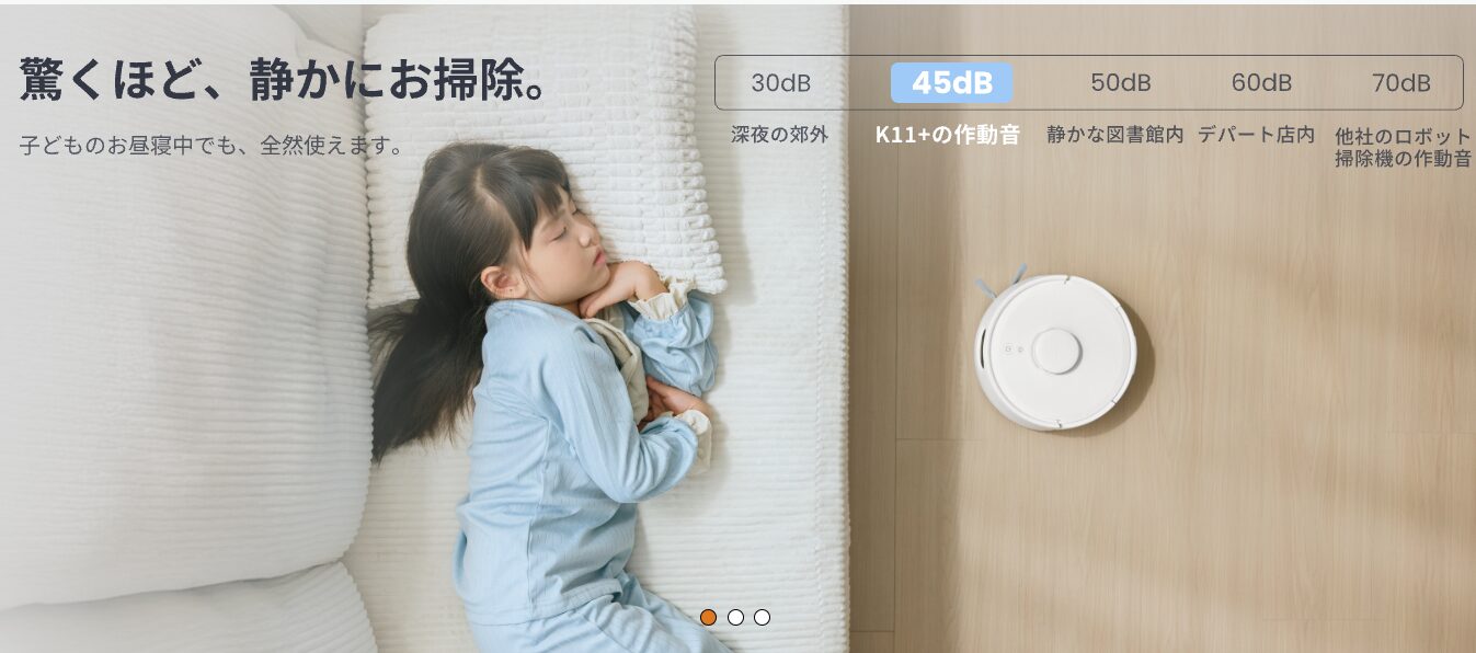 限られたスペースでも置けて、掃除のパワーも妥協しない。静かで扱いやすく、しかもインテリアに馴染むデザイン。これらすべてが揃ったK11+は、ある意味“日本の家のために生まれた”ロボット掃除機といえるかもしれません。