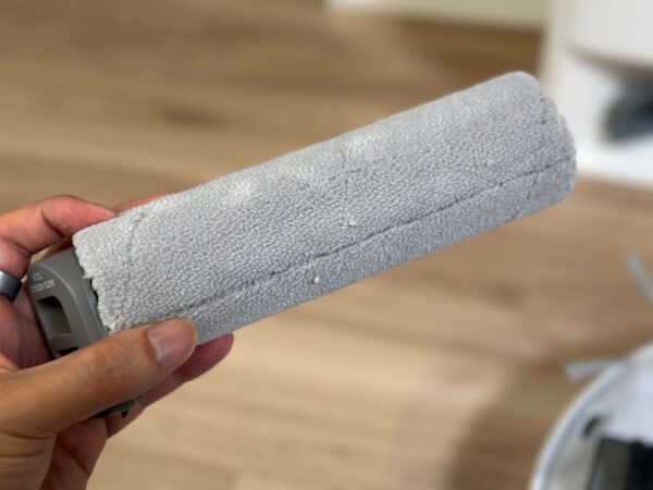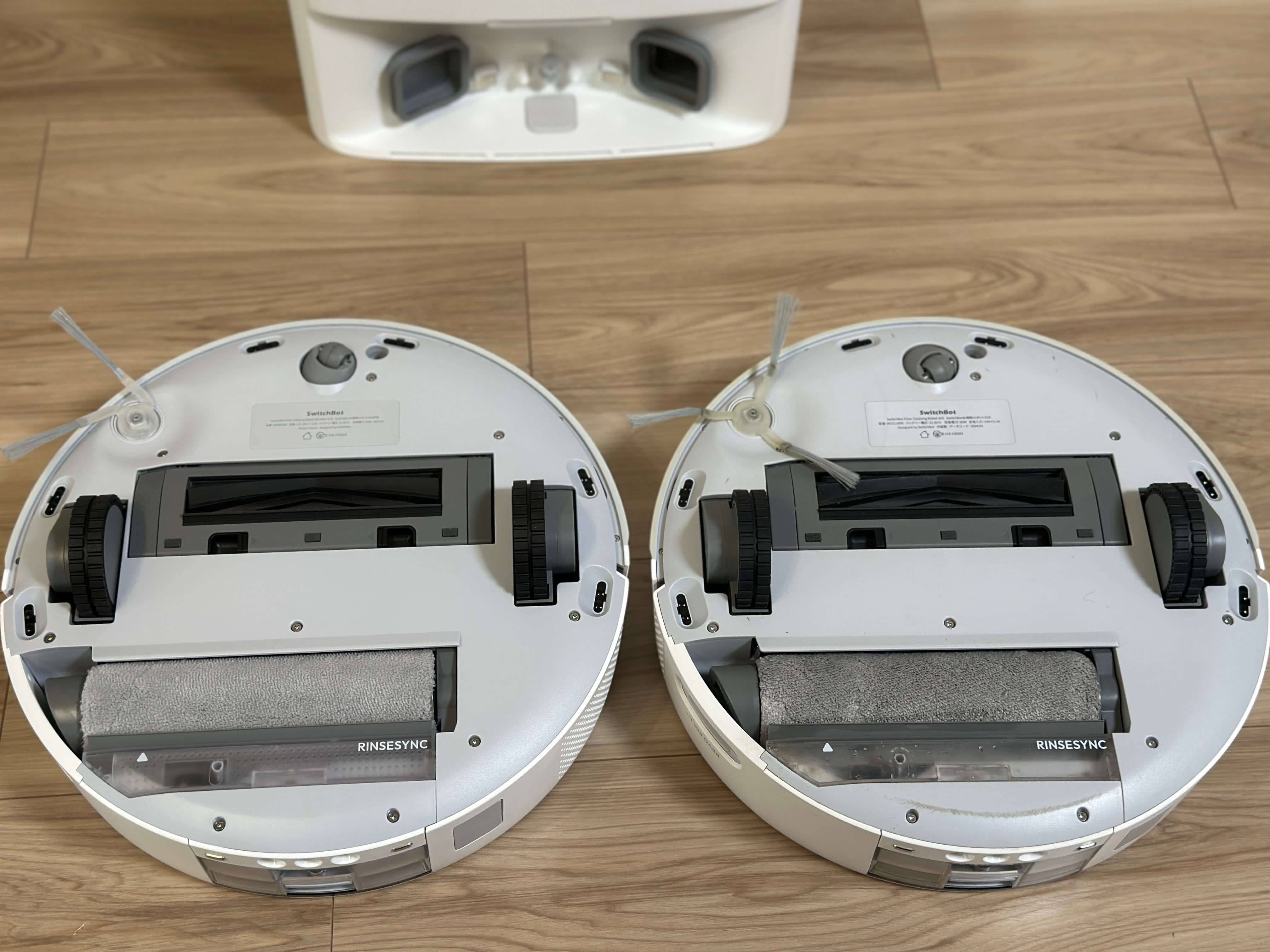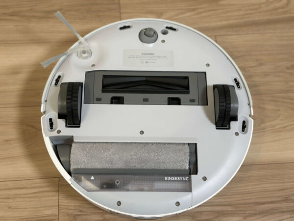 水拭きの中では比較的珍しいタイプで、通常は水平方向に回るデュアルブラシの場合が多いのですが、SwitchBotでは汚れをモップですくうような形で掃除するような形になっています。
