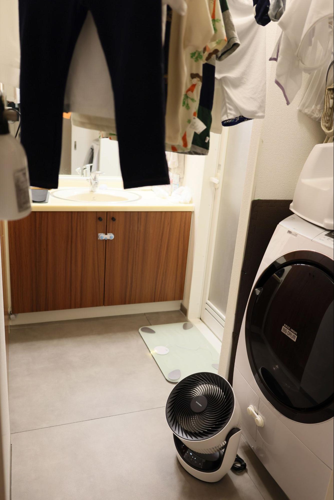 我が家では、洗面所をランドリールームにしていて、ドラム乾燥までしたくない衣類は部屋干しをしています。